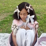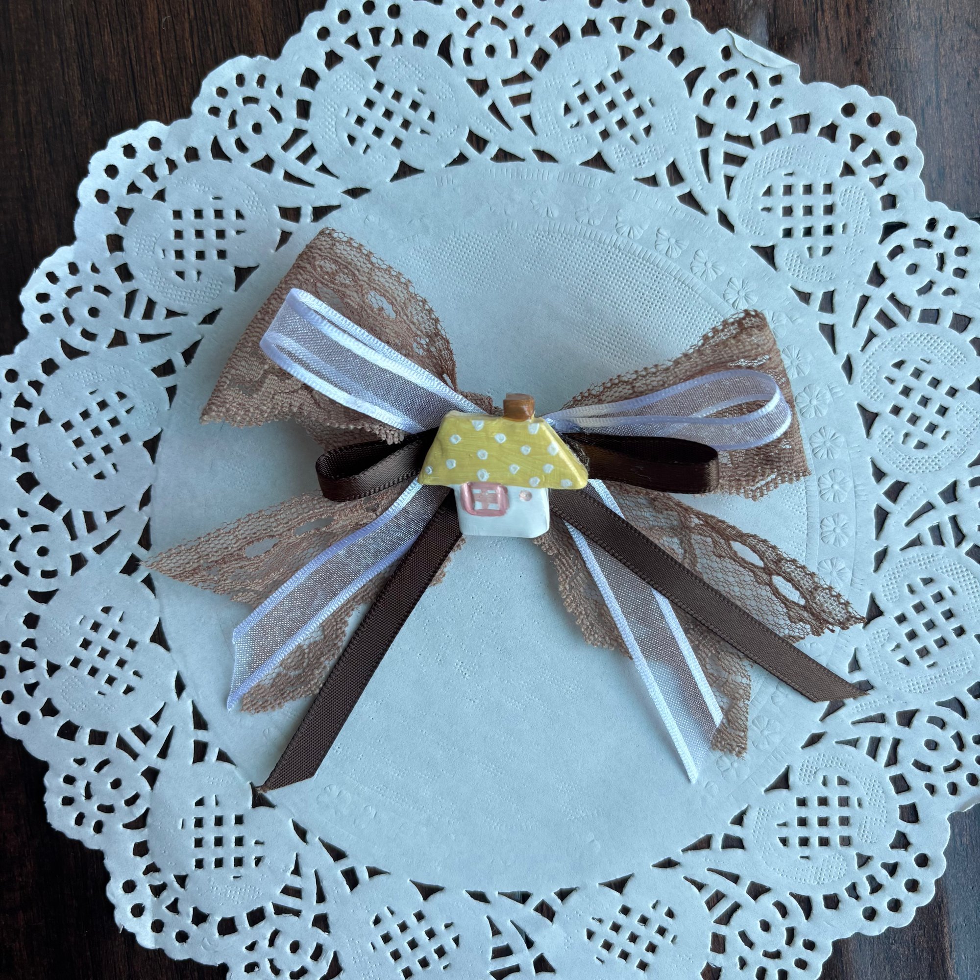 Ribbons with a metal hair clip attachment and clay charm in the center <3 Clip is attached with both glue and hand-sewing for durability! Handmade.